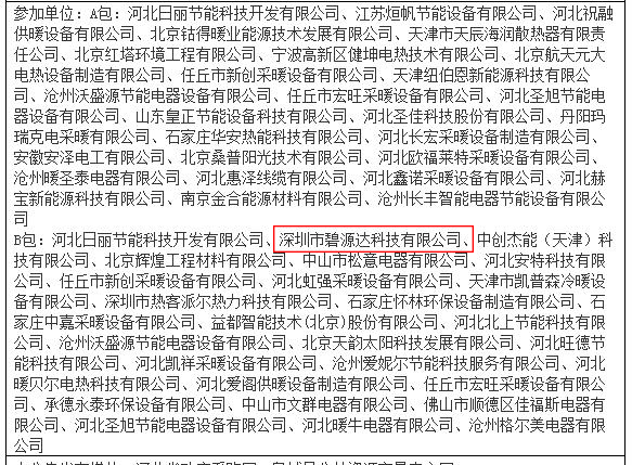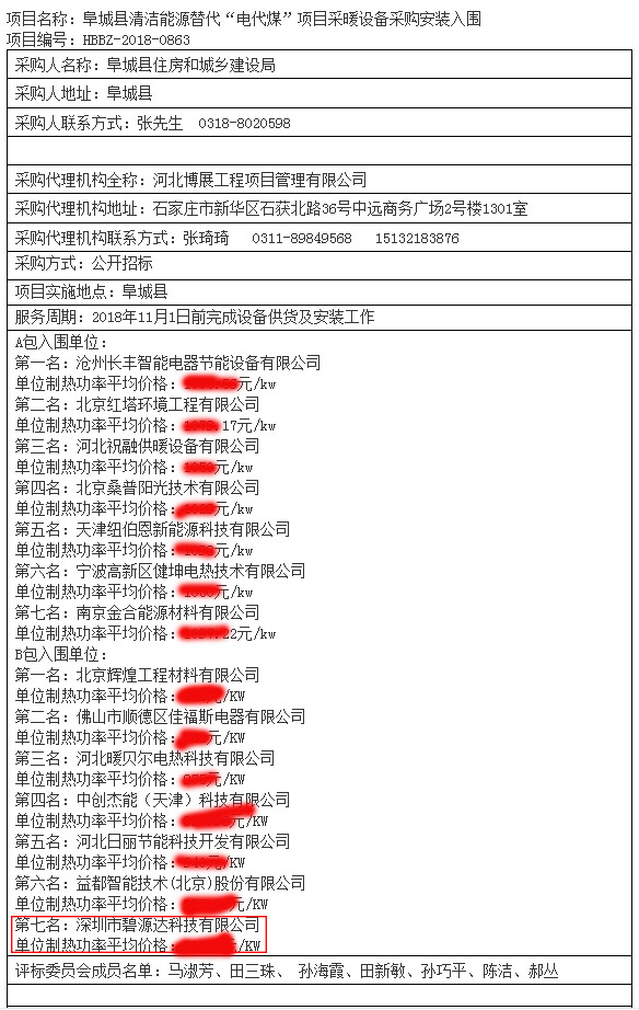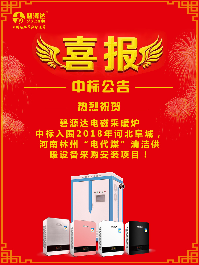 2018年9月我公司(深圳市碧源達(dá)科技有限公司)在河北阜城、河南林州“電代煤”項(xiàng)目采暖設(shè)備采購(gòu)中,憑借過(guò)硬的產(chǎn)品質(zhì)量,扎實(shí)高效的工作作風(fēng),卓越的運(yùn)作團(tuán)隊(duì)和良好的企業(yè)信譽(yù),在28家單位參與投標(biāo)的激烈竟?fàn)幹校晒χ袠?biāo)入圍2018年河北阜城,河南林州“電代煤”清潔供暖設(shè)備采購(gòu)安裝項(xiàng)目!在此特向全國(guó)代理商朋友通報(bào)喜訊。