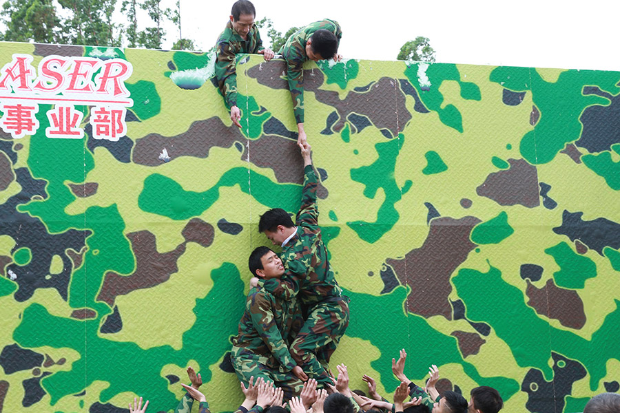 次日,為加強(qiáng)公司員工的凝聚力和向心力,增進(jìn)各部門(mén)的默契配合和無(wú)縫協(xié)作,培養(yǎng)團(tuán)隊(duì)合作精神,本次年終總結(jié)表彰大會(huì)的另一重頭戲——“熔爐團(tuán)隊(duì) 超越自我”正式開(kāi)場(chǎng),拓展活動(dòng)共分“破冰、團(tuán)隊(duì)組建、怪獸過(guò)河、共同進(jìn)退、畢業(yè)墻、水晶彈真人CS”等小項(xiàng)。