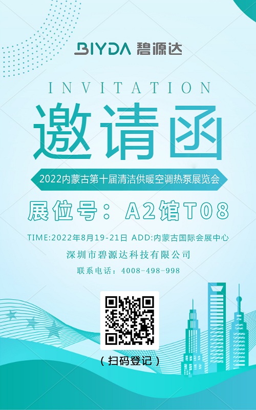 8月19日到21日,2022年內蒙古第十屆國際清潔供暖空調熱泵展覽會,即將于在內蒙古國際會展中心拉開帷幕,碧源達在展位A2館T08恭迎各位朋友的光臨!