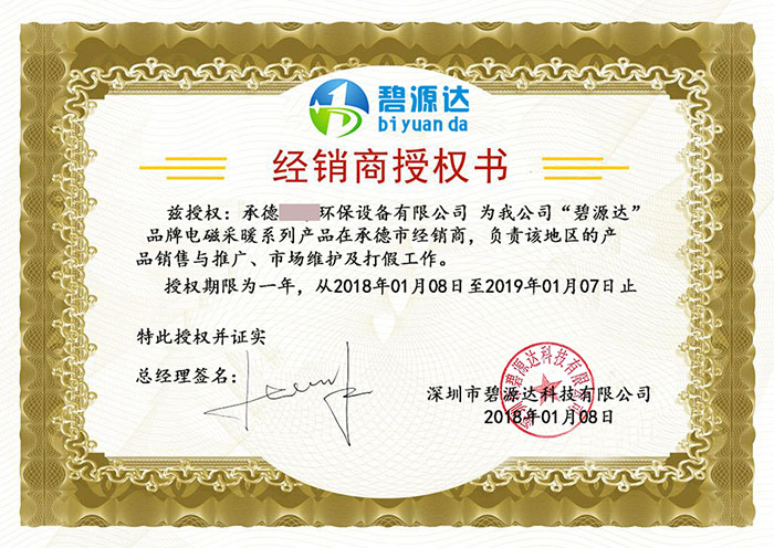 考察完后!張總與我司簽訂了河北省承德市經(jīng)銷商合作協(xié)議,公司董事長李學兵先生為張總頒發(fā)了電磁采暖爐/電磁加熱器系列產(chǎn)品經(jīng)銷商授權書。