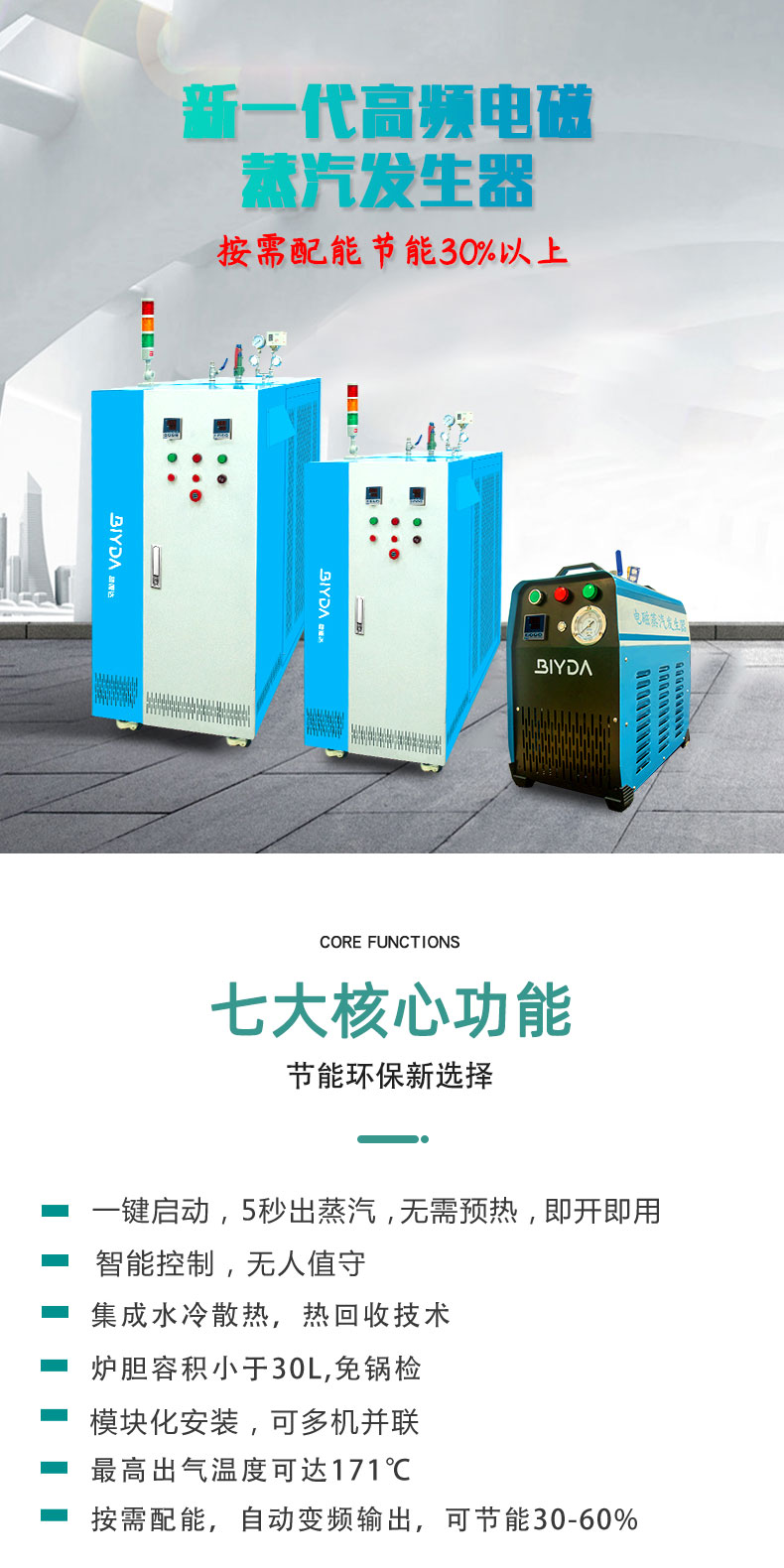 電磁蒸汽發(fā)生器20-80KW 一鍵啟動(dòng),熱回收技術(shù),出氣溫度171℃