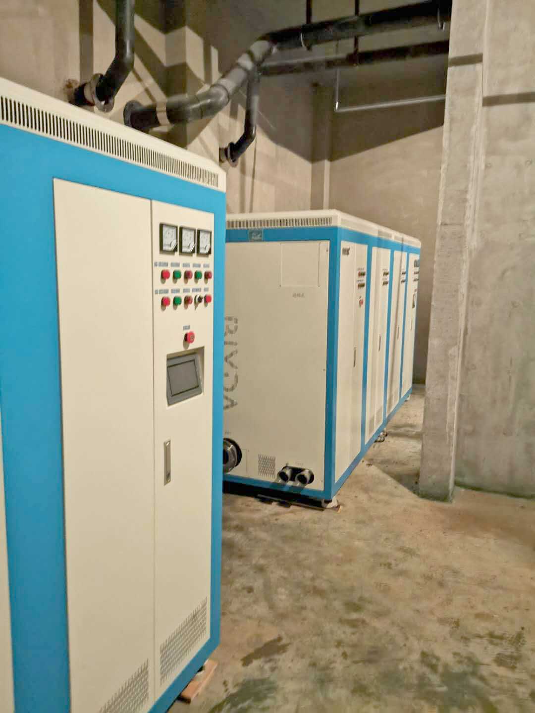 本次屬于小區(qū)二期供熱工程建面約100000㎡,摒棄原有城市大網(wǎng)集中供熱管道,全部采用碧源達高端大型常壓式電磁鍋爐+大型蓄熱保溫水箱方式,利用夜間低谷電價0.28元進行